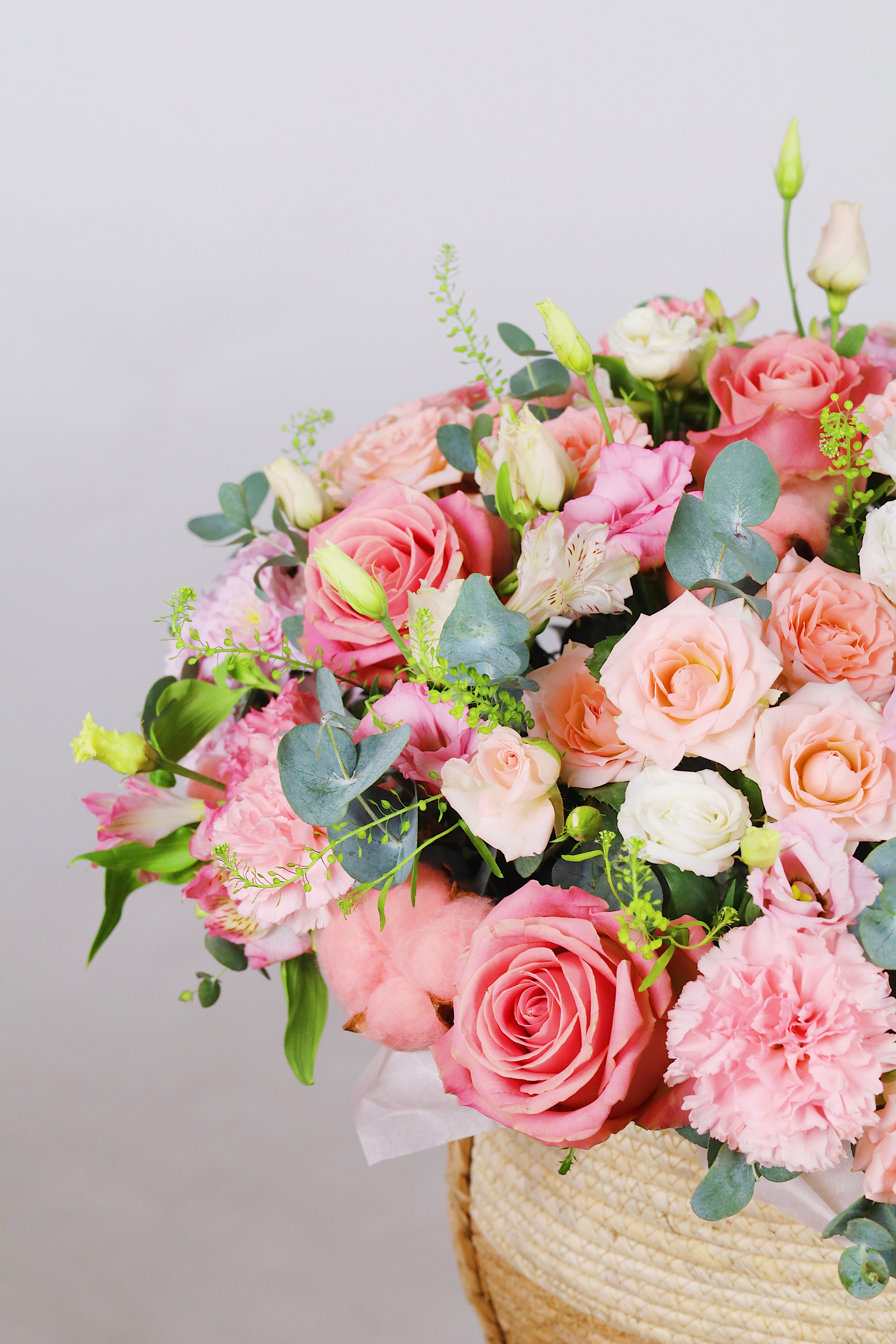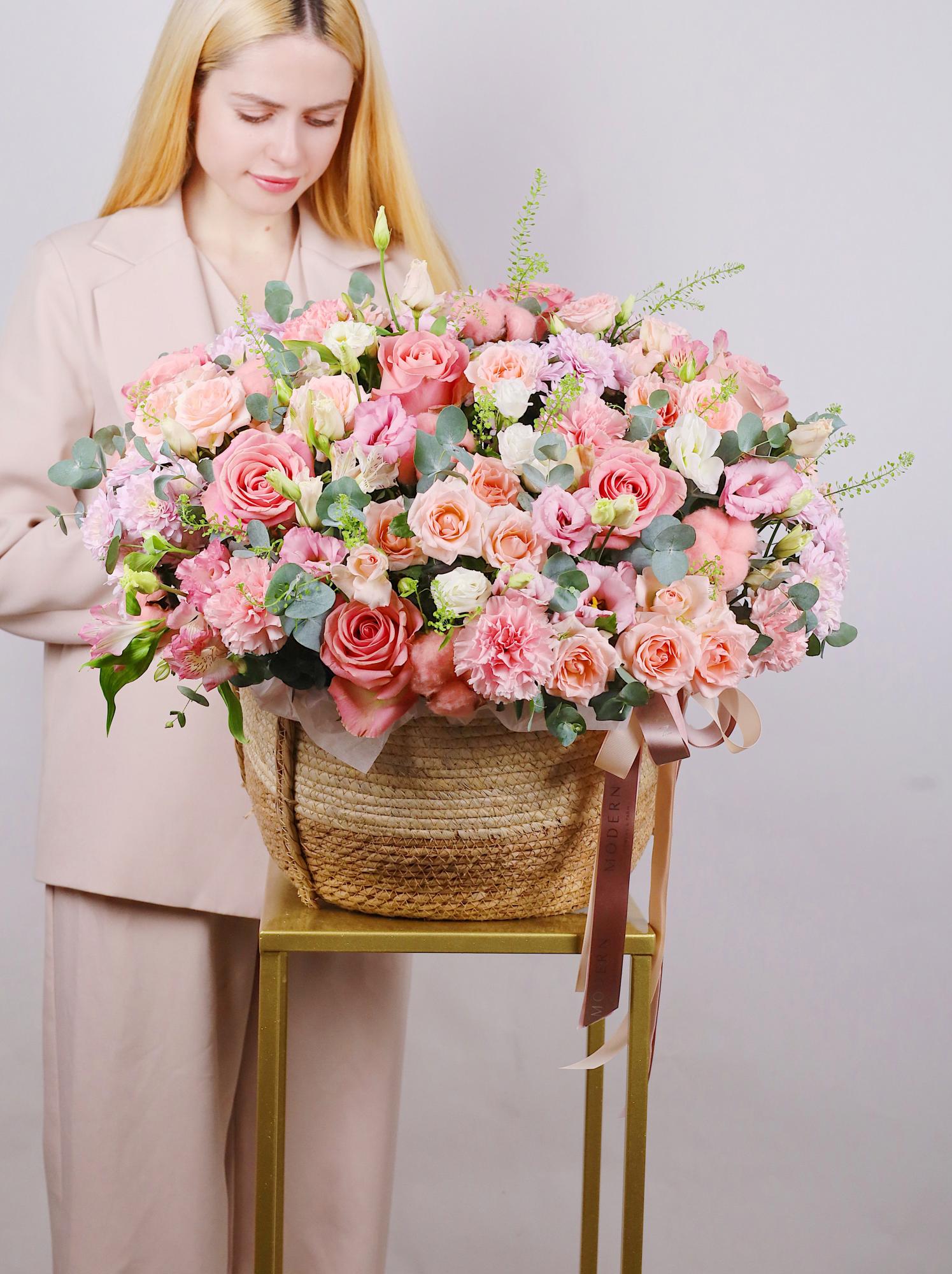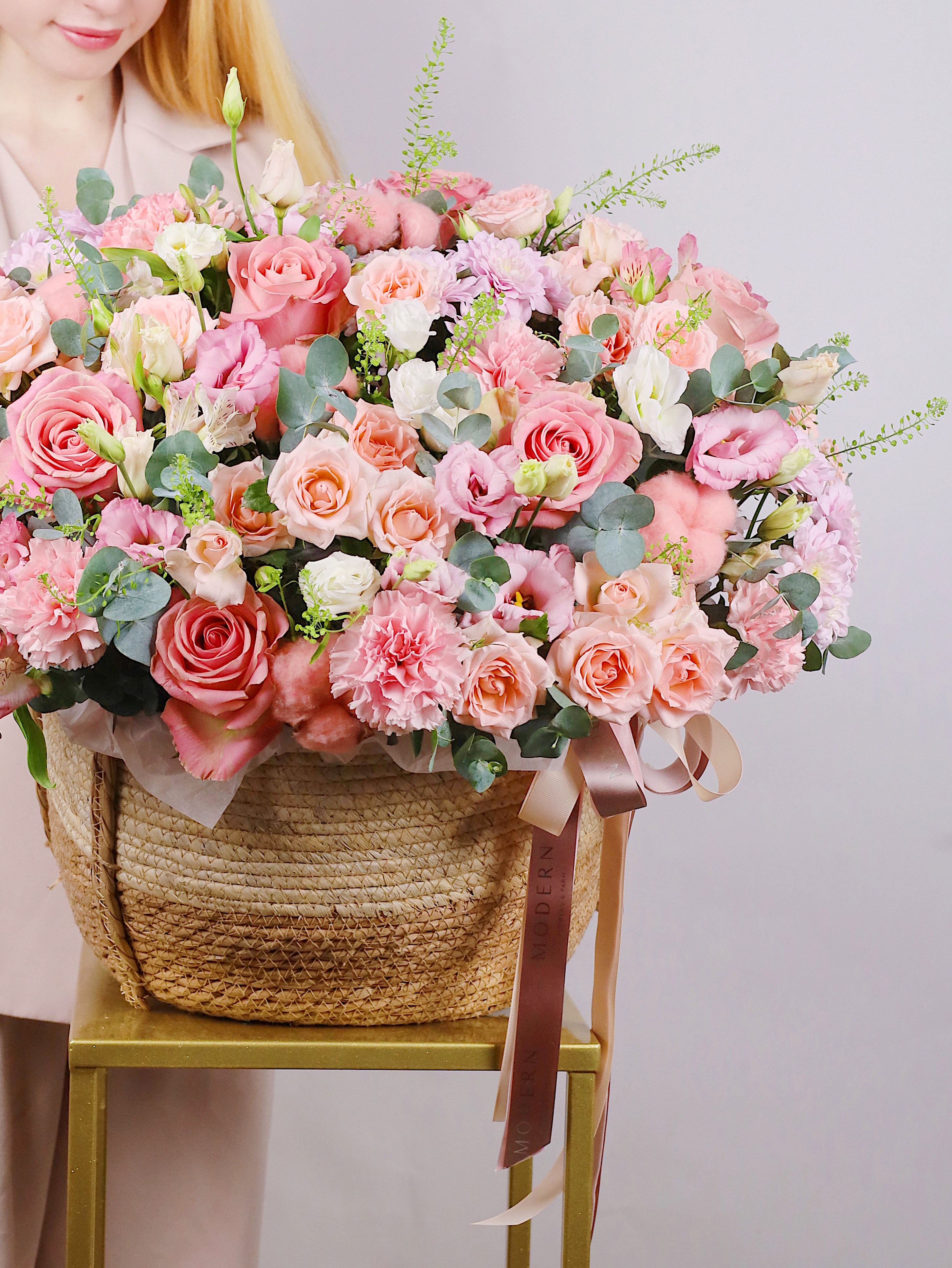 —БОЛЬШАЯ КОРЗИНА С РОЗОЙ И ЭВКАЛИПТОМ