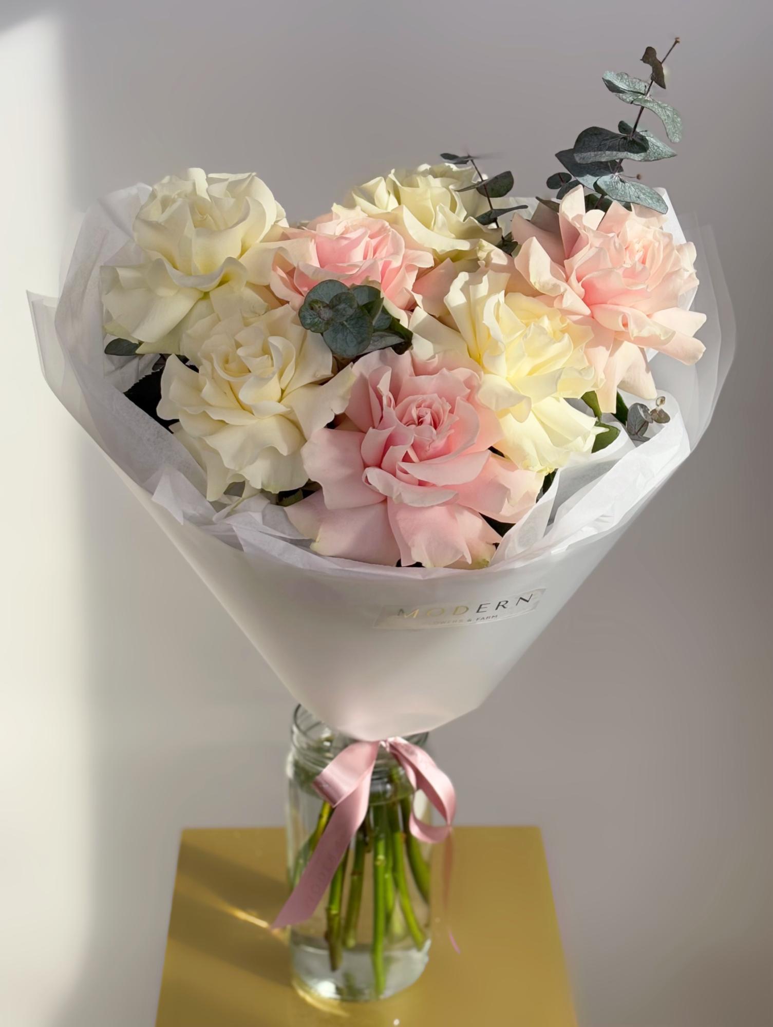 —БУКЕТ ФРАНЦУЗСКИХ РОЗ И ЭВКАЛИПТА
