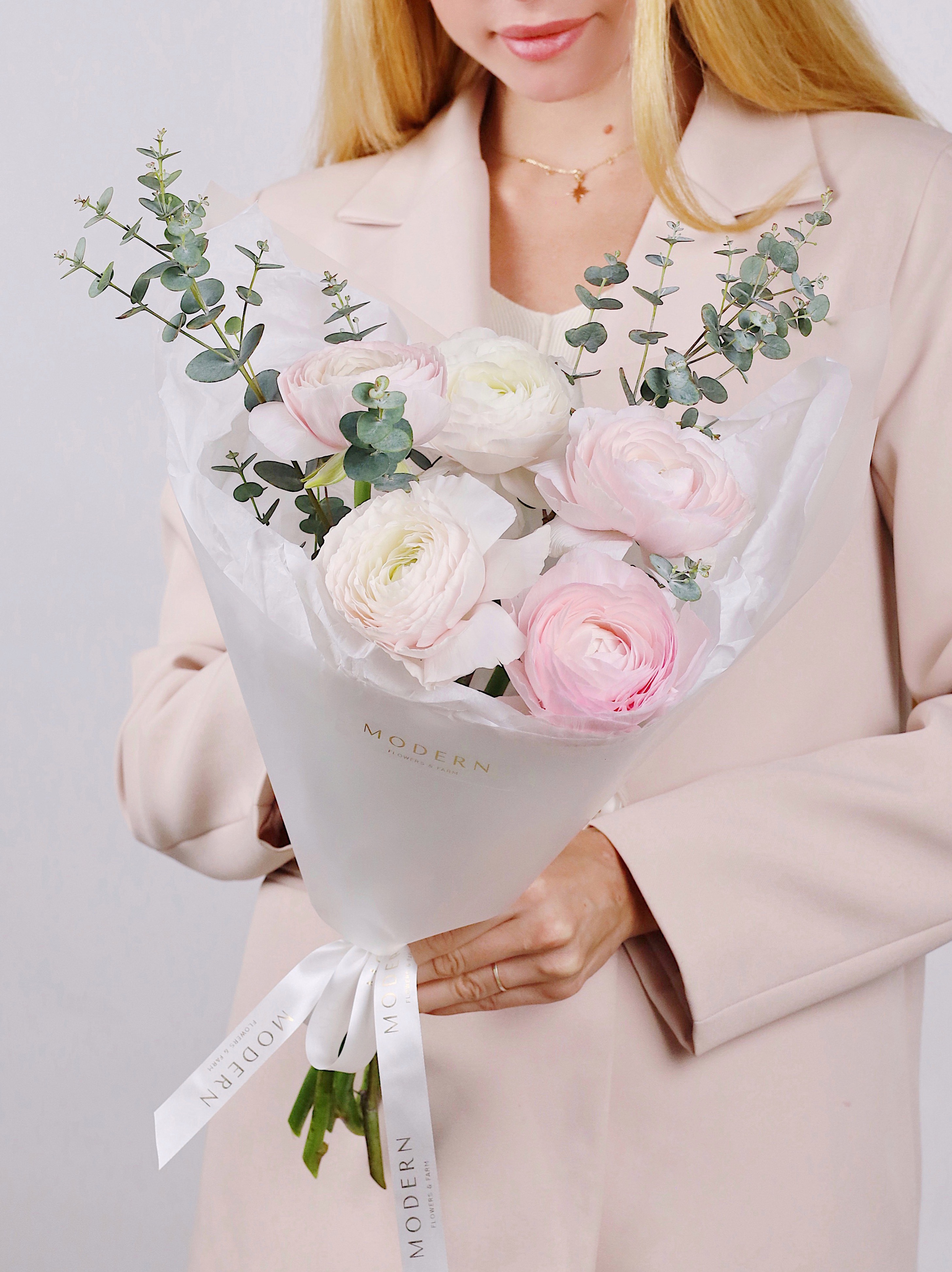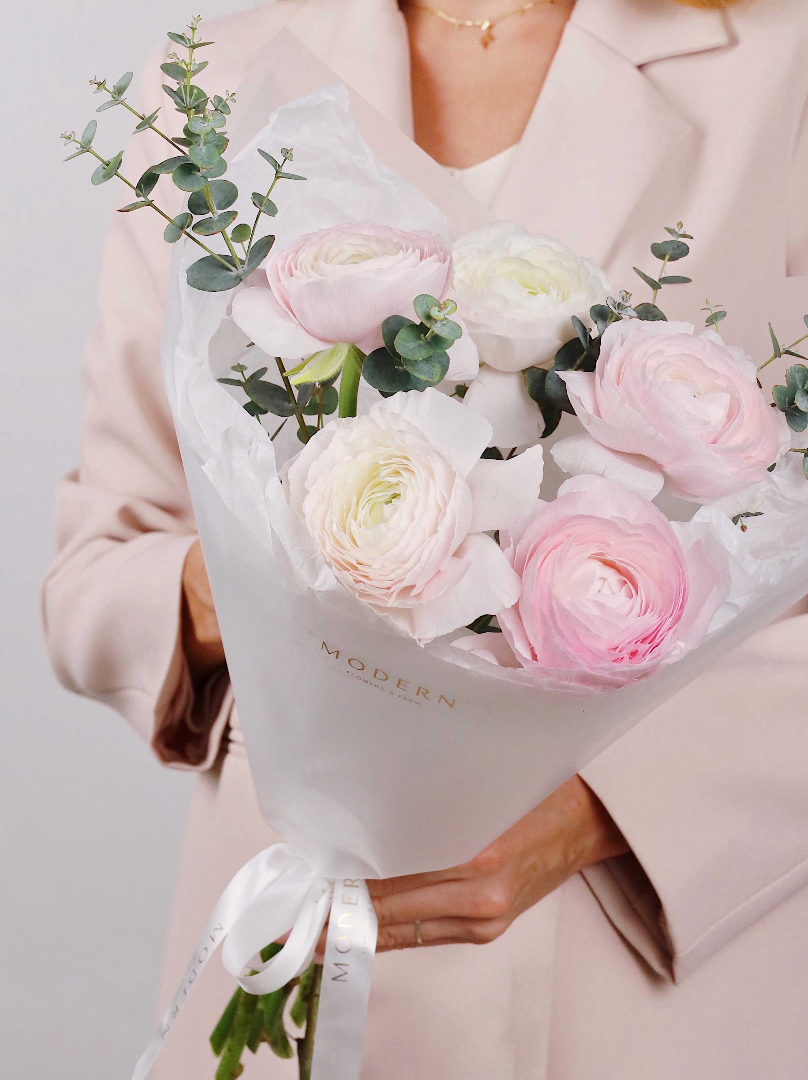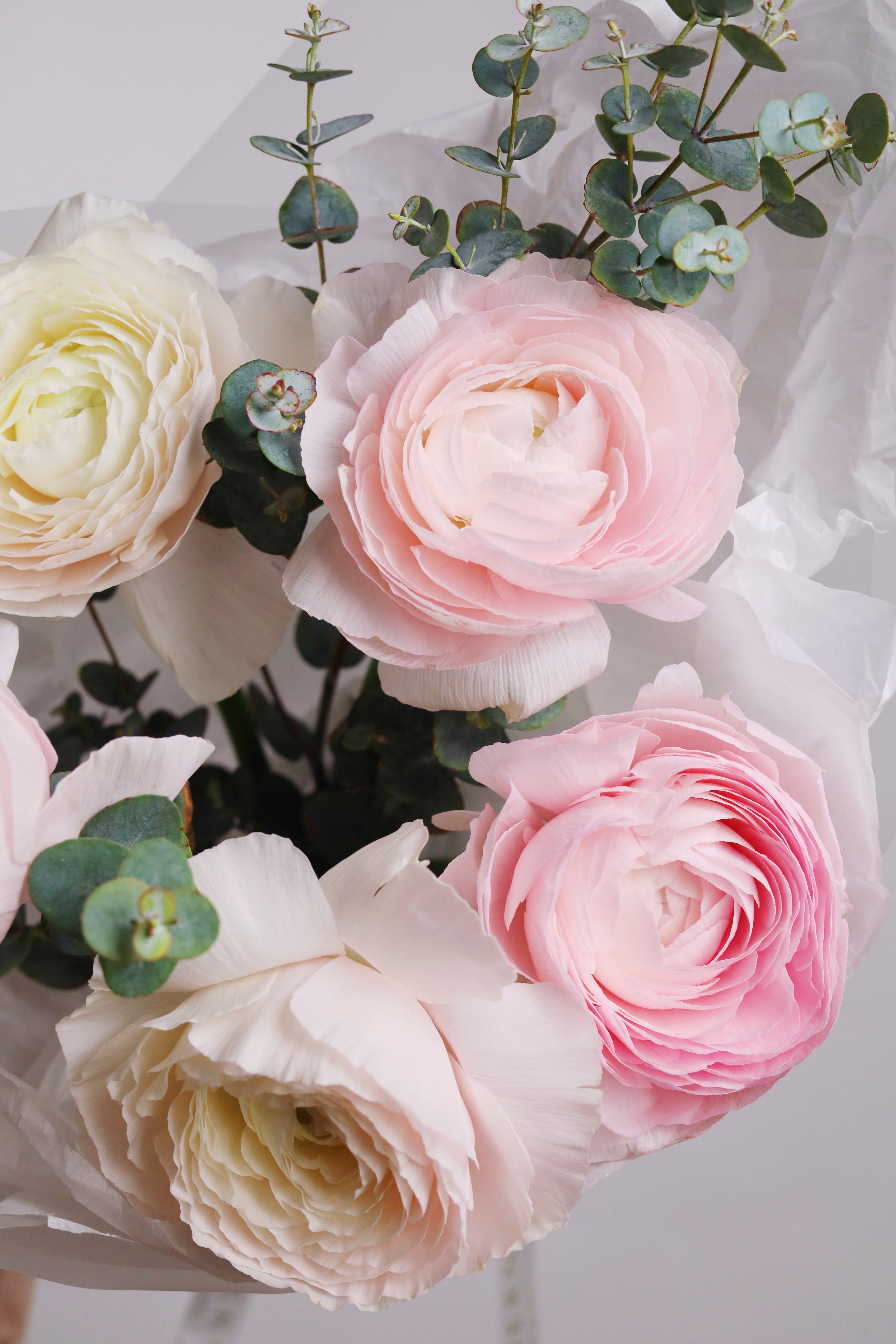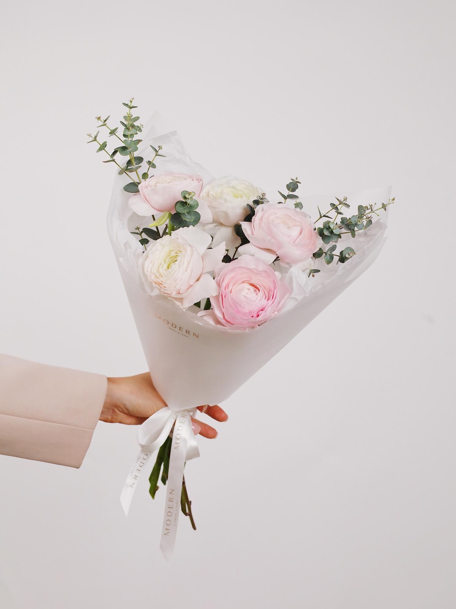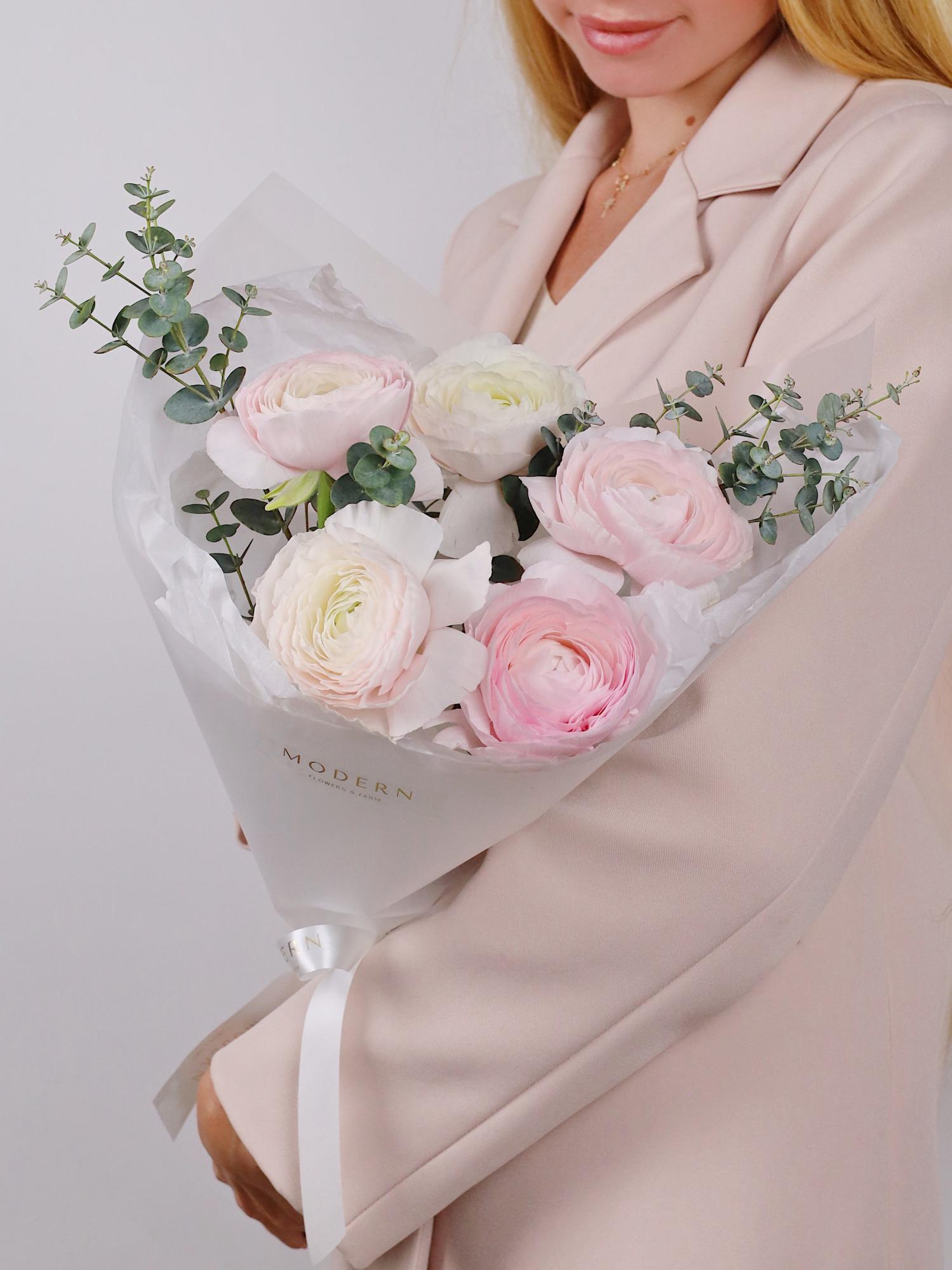 —БУКЕТ ИЗ РАНУНКУЛЮСОВ 5 ШТ И ЭВКАЛИПТА