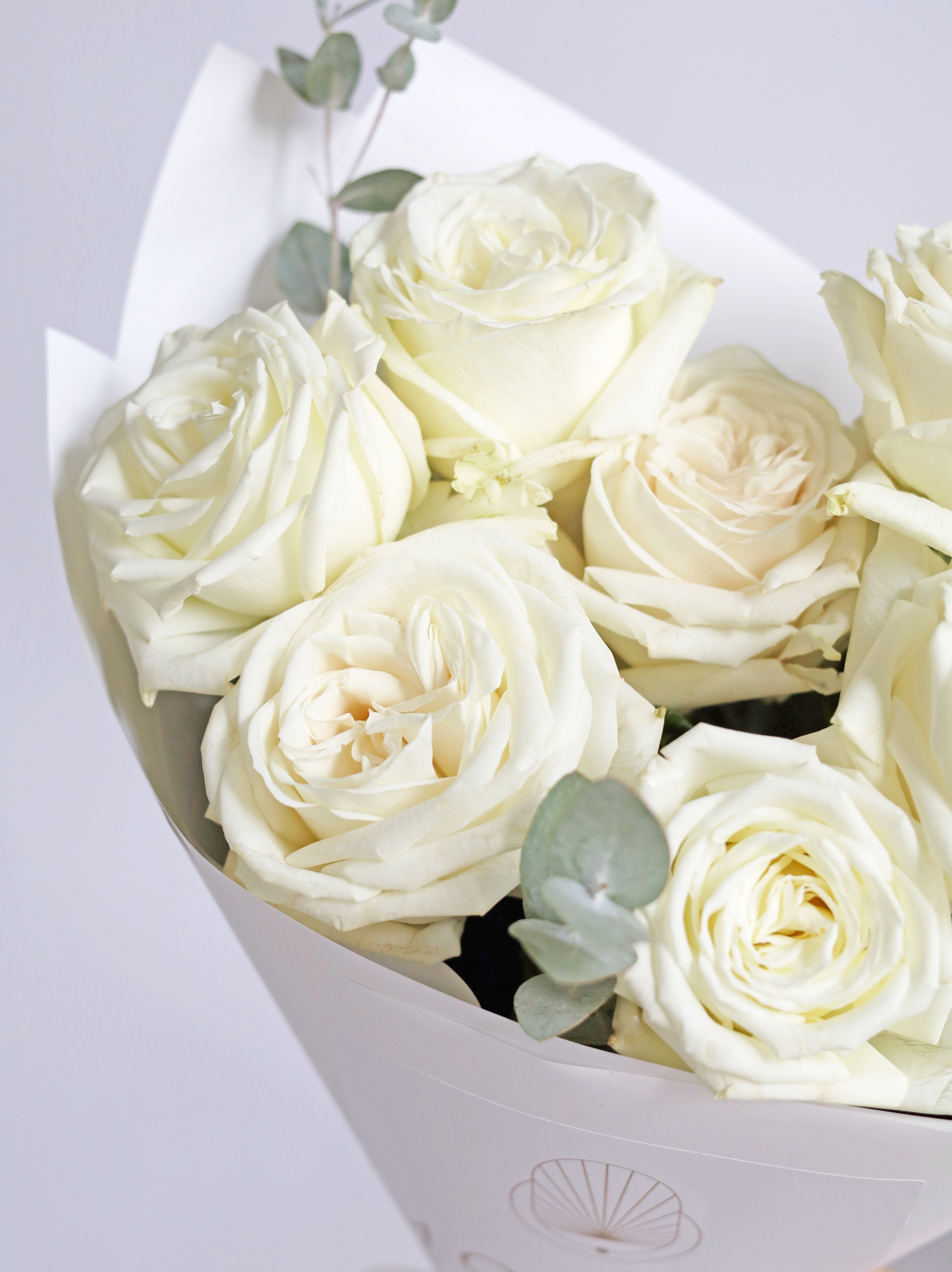БУКЕТ ПИОНОВИДНАЯ РОЗА И ЭВКАЛИПТ
