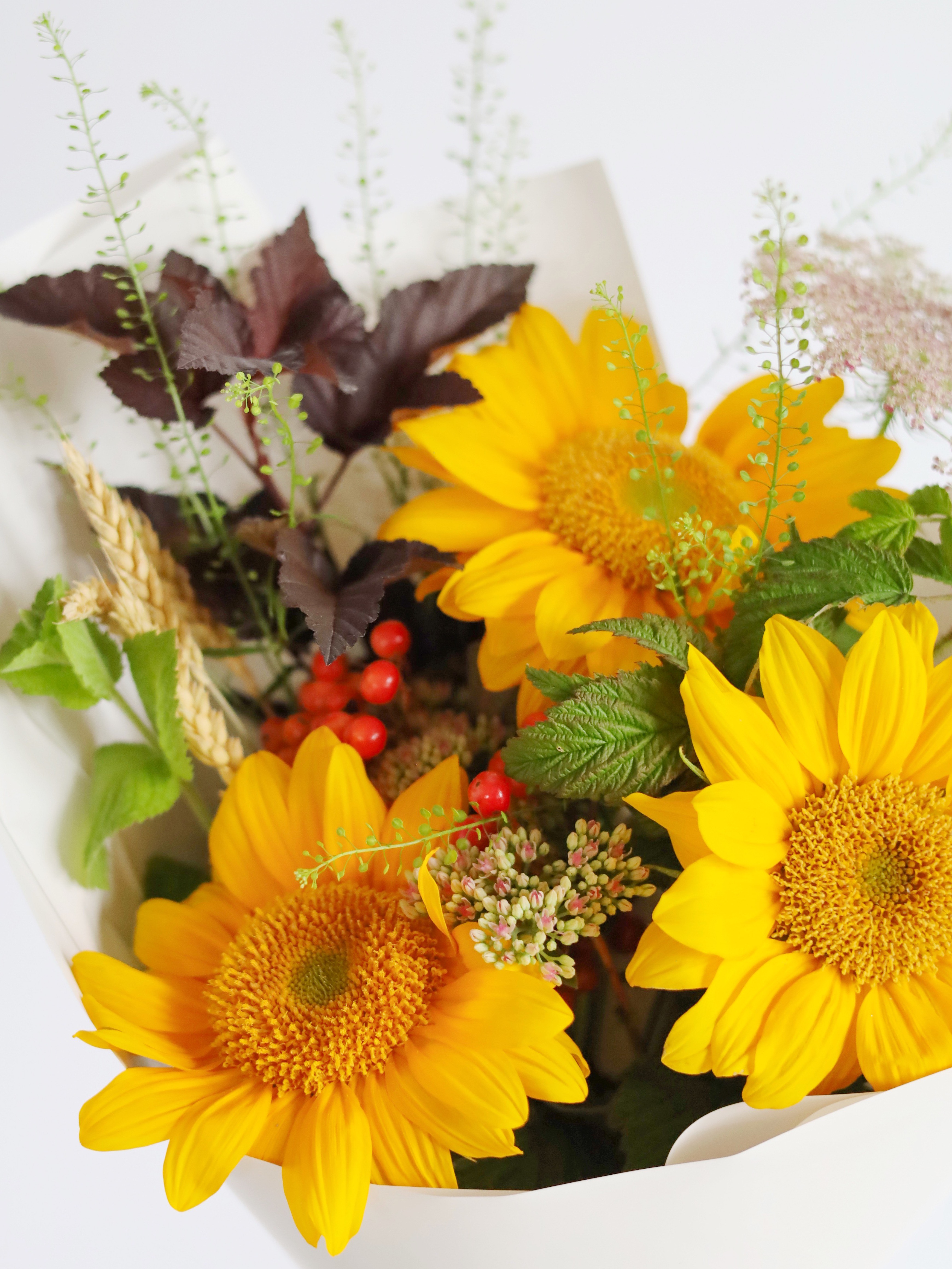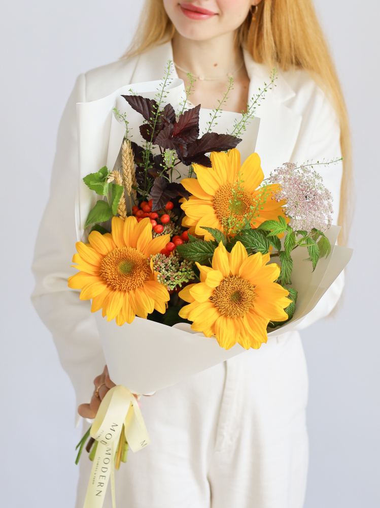 —БУКЕТ С ПОДСОЛНУХАМИ И ЗЕЛЕНЬЮ