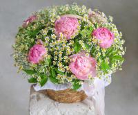 БОЛЬШАЯ КОРЗИНА С ПИОНОВИДНОЙ РОЗОЙ