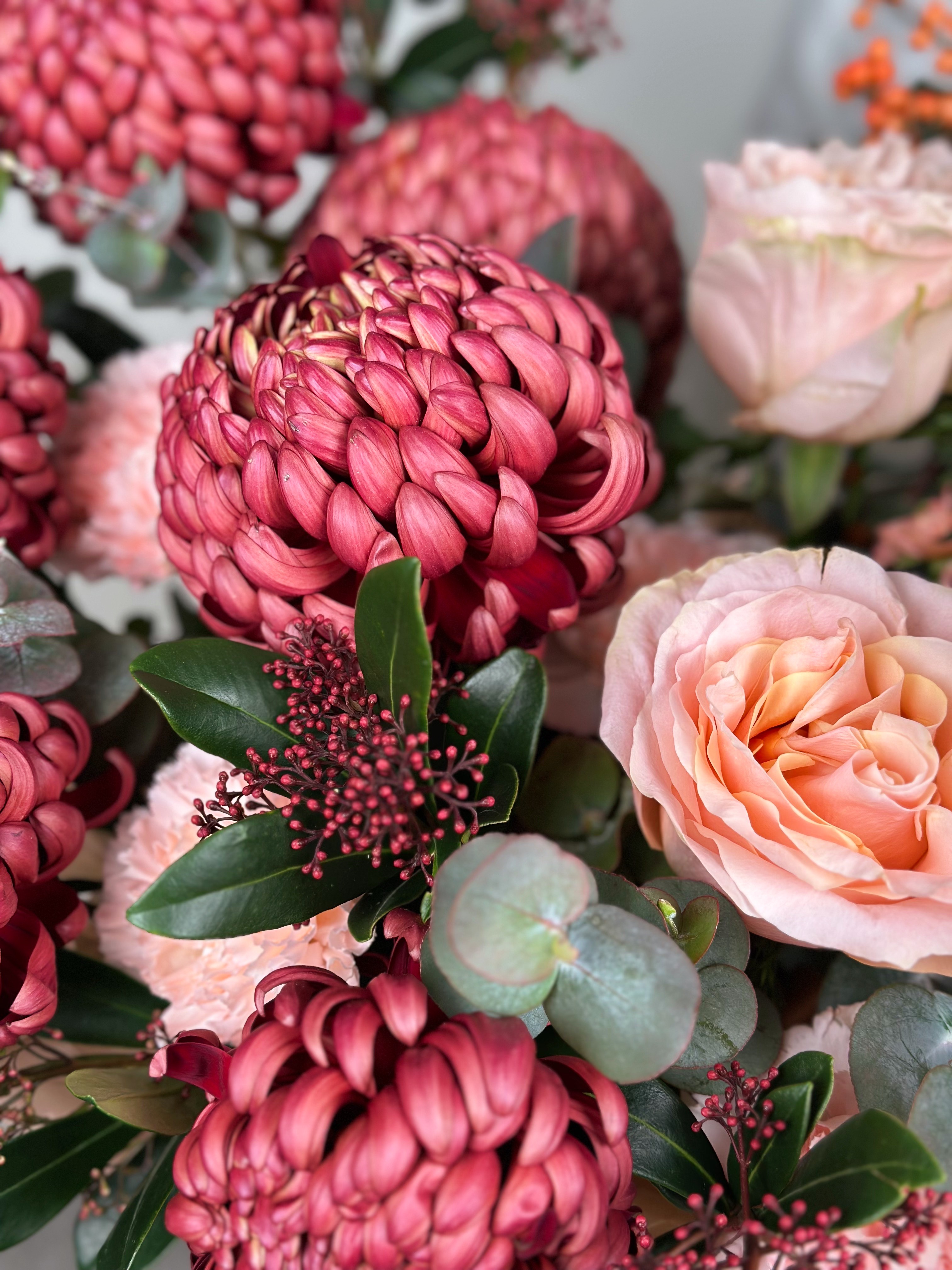 —КОРЗИНА В ОСЕННИХ ТОНАХ С ПИОНОВИДНОЙ РОЗОЙ