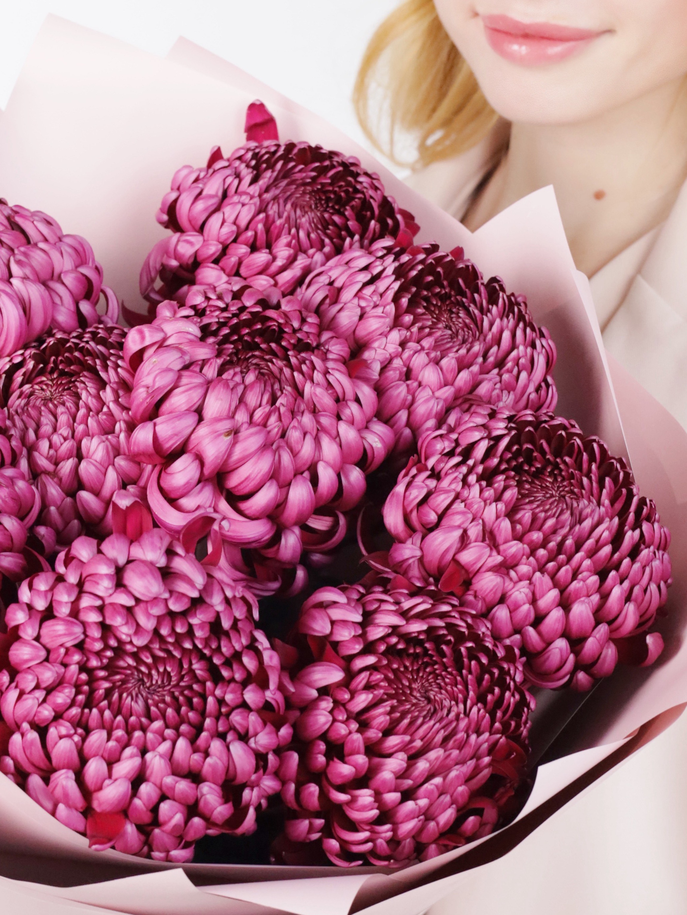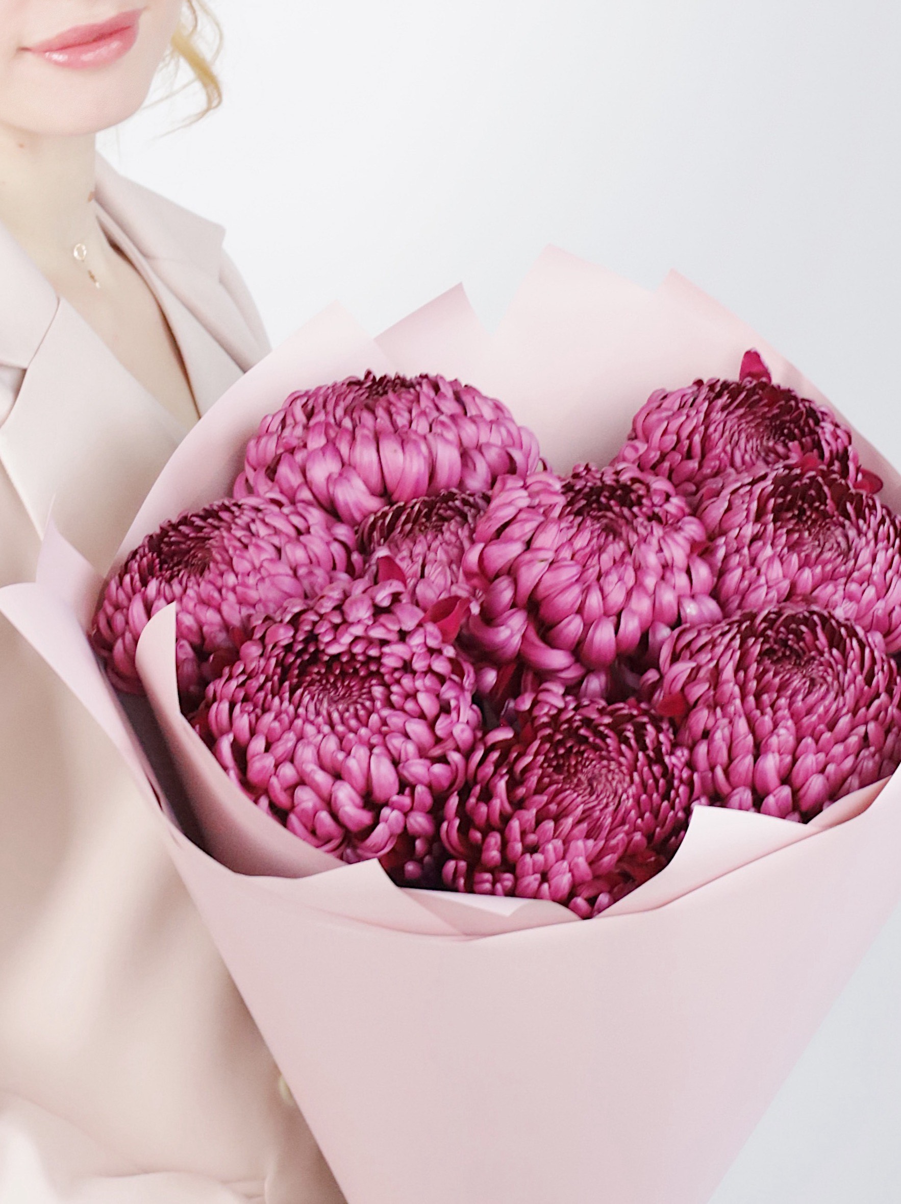 КРУГЛЫЙ БУКЕТ ИЗ ХРИЗАНТЕМЫ БИГУДИ 9 ШТ