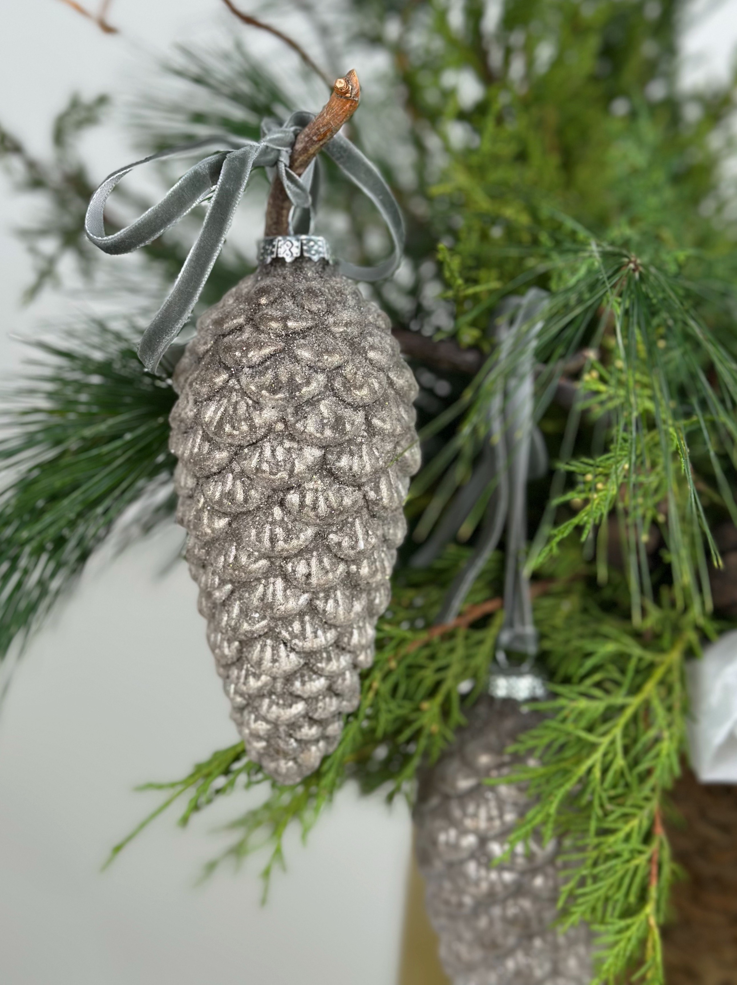 МИКС ХВОИ И ЗАСНЕЖЕННОГО АСПАРАГУСА В КОРЗИНЕ С ДЕКОРОМ