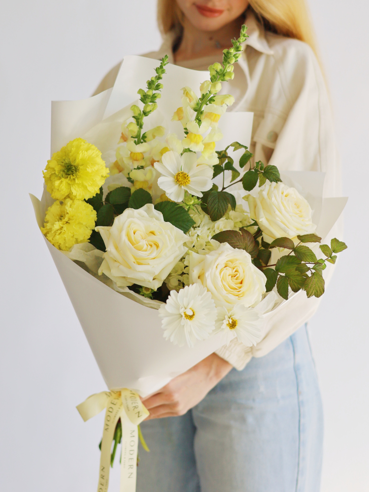 Заказать букет цветов с доставкой на сайте магазина Modern Flowers & Farm можно за 5-10 минут. В течение 2 часов после покупки флористы соберут заказ и передадут в доставку. Штатные курьеры привозят композиции в дополнительных защитных коробках, чтобы не повредить растения в дороге. Стоимость доставки рассчитывается в зависимости от адреса вручения (от 150 рублей). Для постоянных покупателей работает программа лояльности — возвращаем кэшбек бонусами 7% от чека на следующие покупки. Кэшбэк начисляется только при оплате заказа в кассе магазина.
